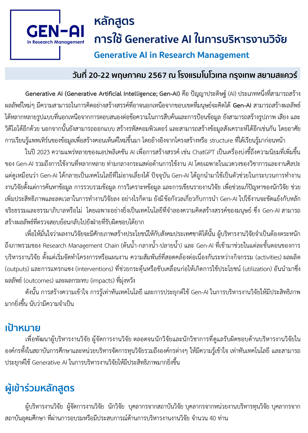 หลักสูตร การใช้ Generative AI ในการบริหารงานวิจัย