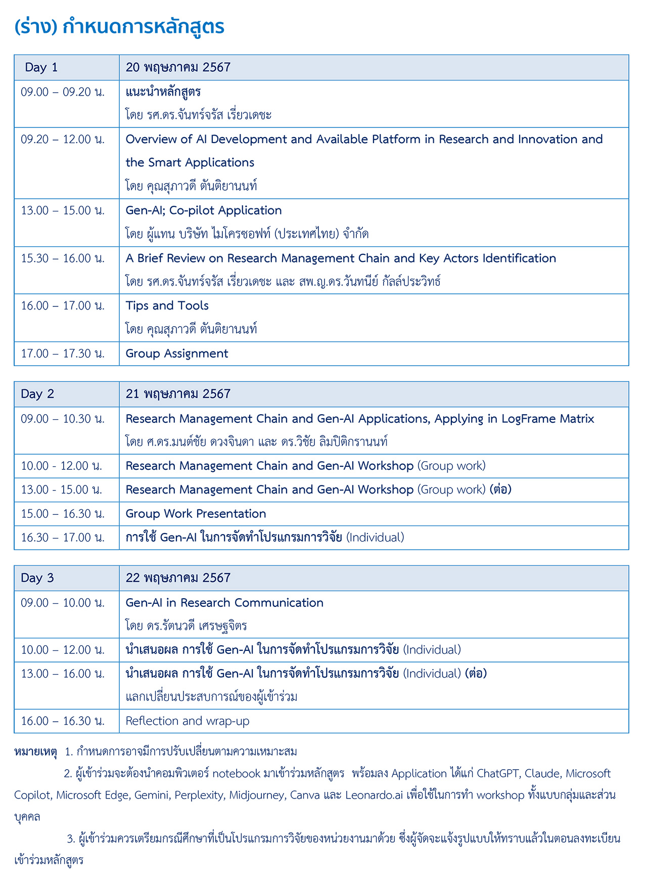 ทั้งนี้ ไม่รวม ค่าเดินทางและค่าที่พัก ของผู้เข้าร่วมการอบรม