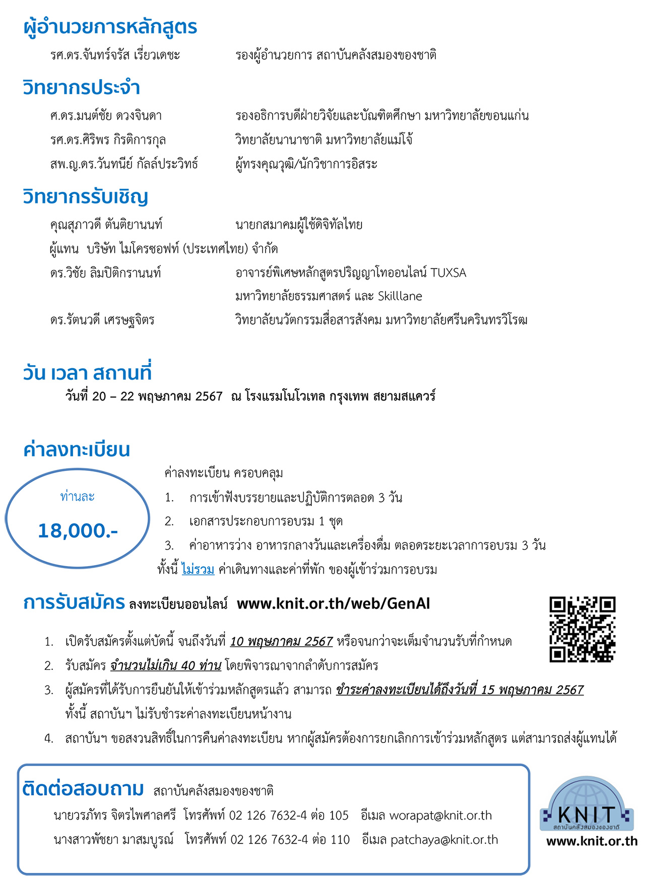 3. ผู้สมัครที่ได้รับการยืนยันให้เข้าร่วมหลักสูตรแล้ว สามารถ ชำระค่าลงทะเบียนได้ถึงวันที่ 15 พฤษภาคม 2567