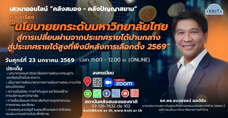 เสวนาออนไลน์ เรื่อง “นโยบายยกระดับมหาวิทยาลัยไทยสู่การเปลี่ยนผ่านจากประเทศรายได้ปานกลางสู่ประเทศรายได้สูงที่พึงมีหลังการเลือกตั้ง 2569”