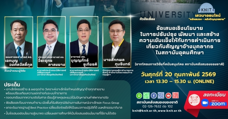 เสวนาออนไลน์ เรื่อง “ข้อเสนอเชิงนโยบายในการปรับปรุง พัฒนา และสร้างความเข้มแข็งให้กับการดำเนินการเกี่ยวกับสัญญาจ้างบุคลากรในสถาบันอุดมศึกษา”